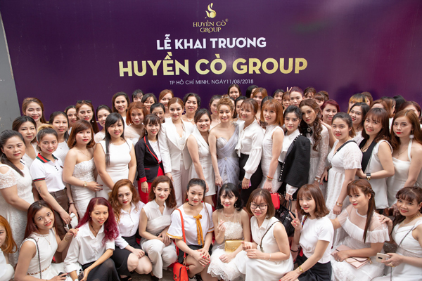 Á Hậu – CEO Ngọc Huyền lần lượt chụp hình kỷ niệm với 300 cô gái làm việc cho Huyền Cò trên cả nước đến tham dự buổi khai trương.