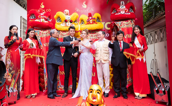 Bà Võ Thị Ngọc Huyền cùng các vị đại biểu được mời lên sân khấu thực hiện nghi thức cắt băng khánh thành trong không khí vô cùng trang trọng, dưới sự chứng kiến của hơn 300 vị khách đến tham dự. Không những thế, trong không khí hân hoan bà Võ Thị Ngọc Huyền cùng các khách mời vinh dự cùng nhau nâng ly rượu chúc mừng Huyền Cò Center và Huco Spa khai trương hồng phát.