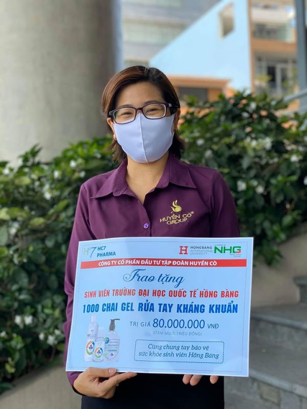 Huyền Cò tặng gel cho Trường Đại Học Hồng Bàng TPHCM